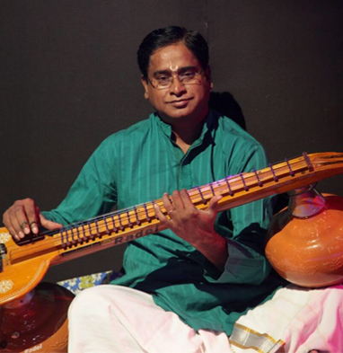 With more than 40 years of solo experience behind him he has found his niche in various forms like dance recitals, instrumental duets, veena violin flute trio, fusion and other musical ensemble.He is also adept in playing the veena as accompaniment for several vocal artistes.His playing is marked by gentle plucking and graceful yet firm gliding over the frets and resemblance to vocal singing.